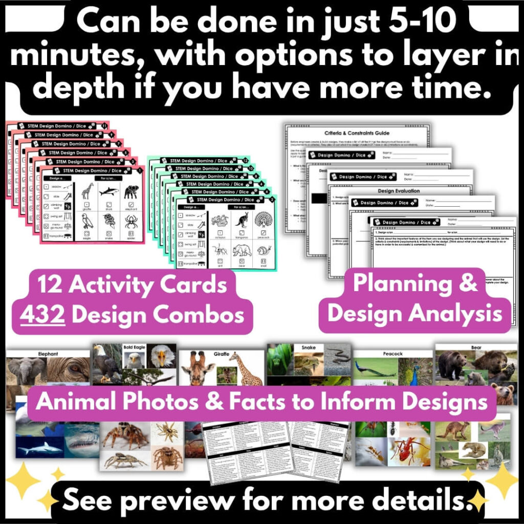 If you’re DIYing this activity, you can certainly add a research component, but that extra step often eats up precious class time. That’s exactly why I built Design Domino with those animal visuals and facts already included — so every student (even the reluctant ones) can jump straight into meaningful, well-informed design thinking without losing momentum.